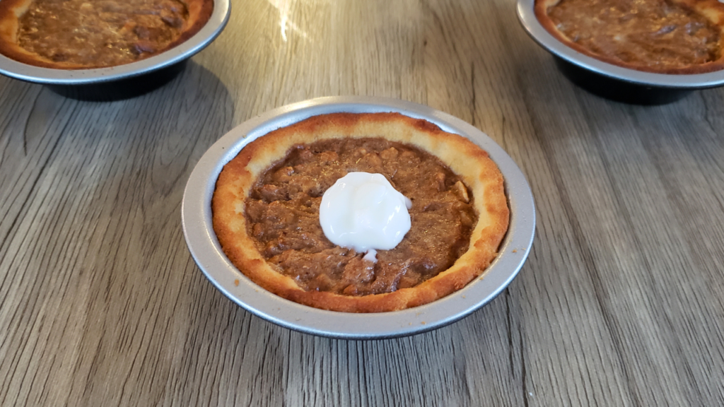 - Open the fryer and allow the pies to set in the fryer 5 minutes to fully set. After 5 minutes, remove the pies from the air fryer. Place the pies on a wire rack and allow to cool completely before serving. (if using a filling other than the pecan filling eat the pie at the temperature specified in the recipe)