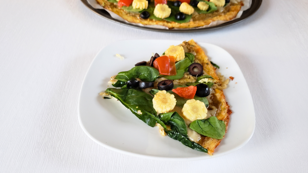 - Remove from the oven and let the "crust" cool for 10 minutes before adding the toppings. While the pizza is cooling prepare you desired sauce and toppings.