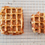 Preheat a waffle iron for 3 to 5 minutes until heated. Sift the dry ingredients into a medium bowl until no lumps. Stir in the remaining ingredients until fully combined and sticks together. Spread batter evenly throughout the prepared waffle iron molds (about 1/3c in each traditional sized mold and 1/4 cup for mini-iron.) Cook for 3 minutes until golden. Once cooked remove from the waffle iron. Eat immediately or allow to cool to room temperature.