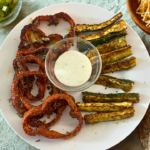 This recipe is designed to teach everyone how to make keto zucchini fries and pepper rings